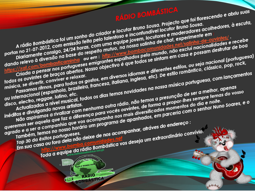 RÁDIO BOMBÁSTICA, 24 H POR DIA!!!