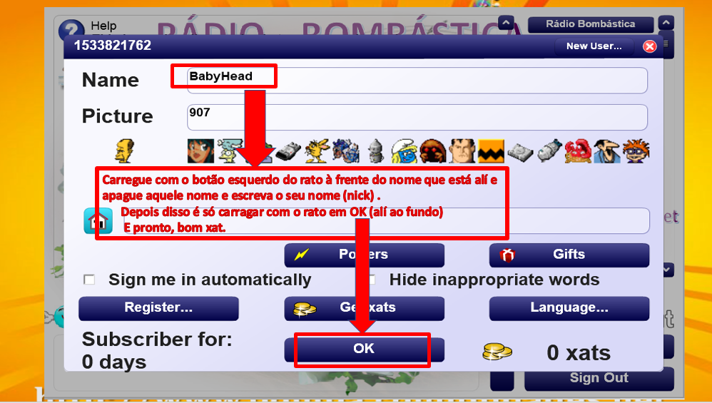 Regra para mudar o seu Nome (boneco verde)